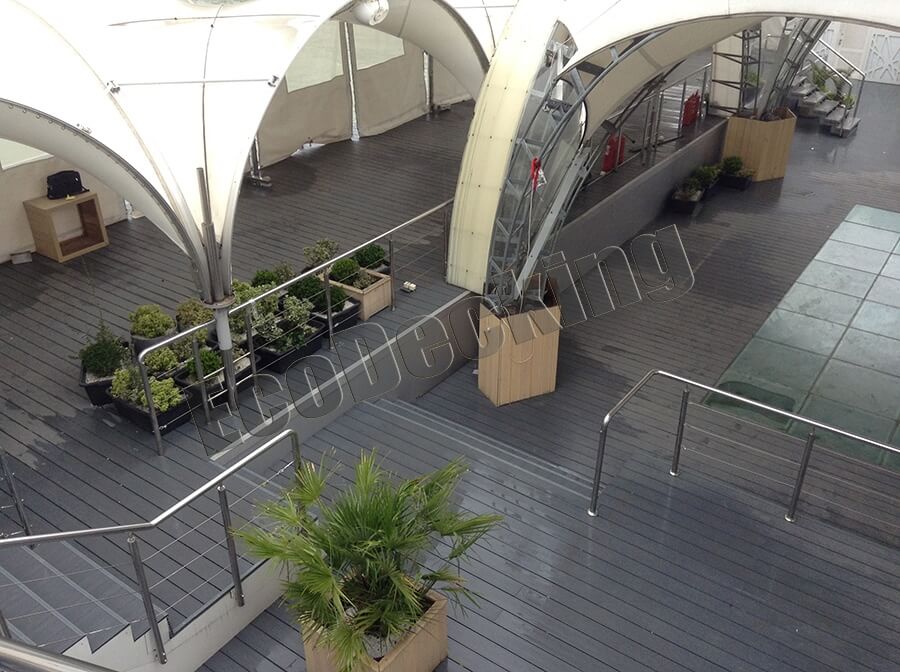 Террасные настилы Экодекинг отлично подходят как настил летней веранды у кафе или как танцпол ночного клуба.